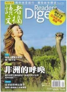 《讀者文摘繁體中文版》是一本家庭月刊,涵蓋了大眾科學(xué)、美食烹飪、旅游休閑、金融政治、家居與園藝、藝術(shù)與娛樂、商業(yè)與文化。其他固定的專欄還包括了笑話、謎語、測試、動畫及讀者來信。 |