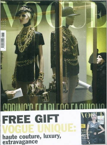 《VOGUE服飾與美容》雜志是全球最領(lǐng)先的時(shí)尚雜志,是世界流行風(fēng)潮的引領(lǐng)者。聘用最專(zhuān)業(yè)的編輯人員;結(jié)合世界上最優(yōu)秀的設(shè)計(jì)師;起用最具才華的攝影師與模特來(lái)創(chuàng)造市場(chǎng)上最高質(zhì)量的雜志。 |
