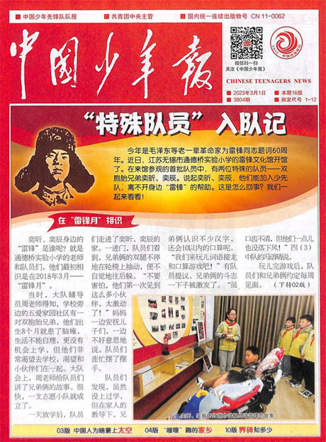 《中國少年報》是中國少年先鋒隊隊報,肩負著黨和國家對民族未來的殷切希望,凝聚著幾代黨和國家領導人的親切關懷。 |
