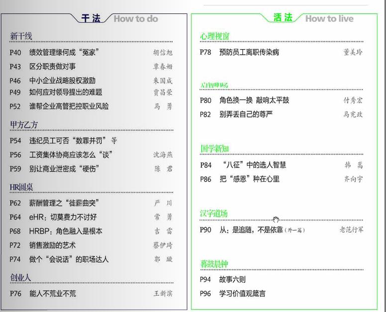 中國雜志網 >> 《人力資源》雜志 >> 2013年11期雜志目錄