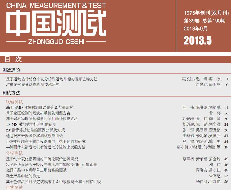中國雜志網(wǎng) >> 《中國測試》雜志 >> 2013年5期雜志目錄