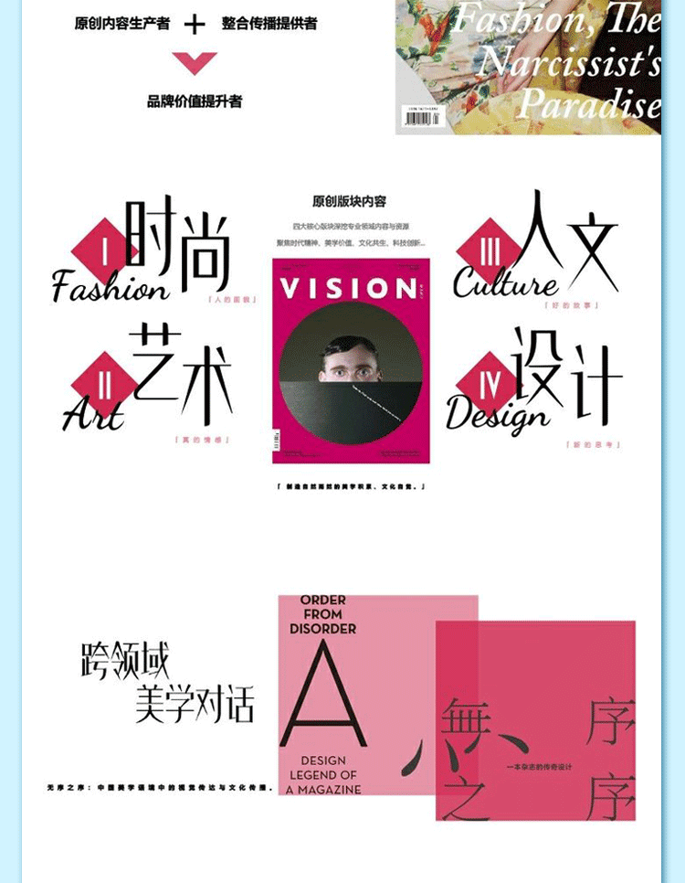 《青年視覺》是國內大型時尚藝術生活雜志,用獨有的視覺語言詮釋時尚、藝術、人文、科技、建筑及生活。