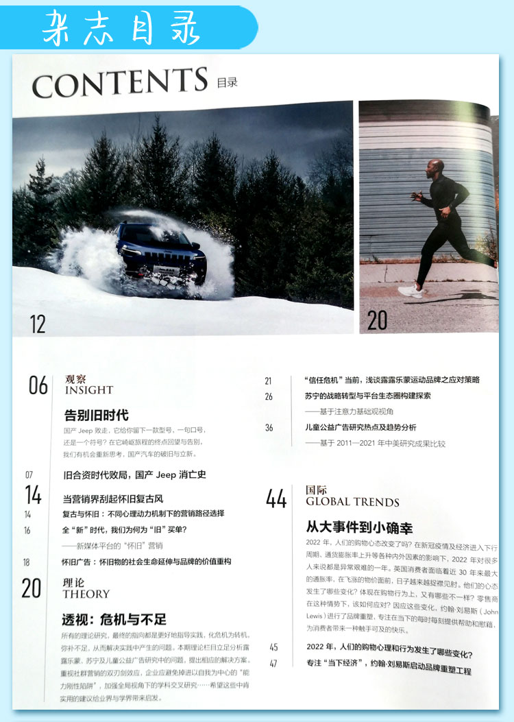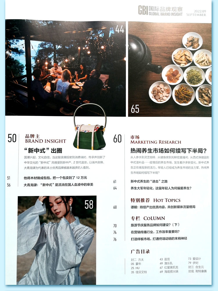 《國際品牌觀察》是一本專業(yè)的廣告雜志,是一本獨家購買世界權威雜志美國《廣告時代》周刊中國版權的雜志。它是一本環(huán)球市場、專業(yè)務實、資訊及時的專業(yè)化雜志。《國際品牌觀察》創(chuàng)刊于1985年,中國對外貿易經濟合作部主管、中國對外經濟貿易廣告協(xié)會主辦,面向國內外發(fā)行的廣告專業(yè)月刊。