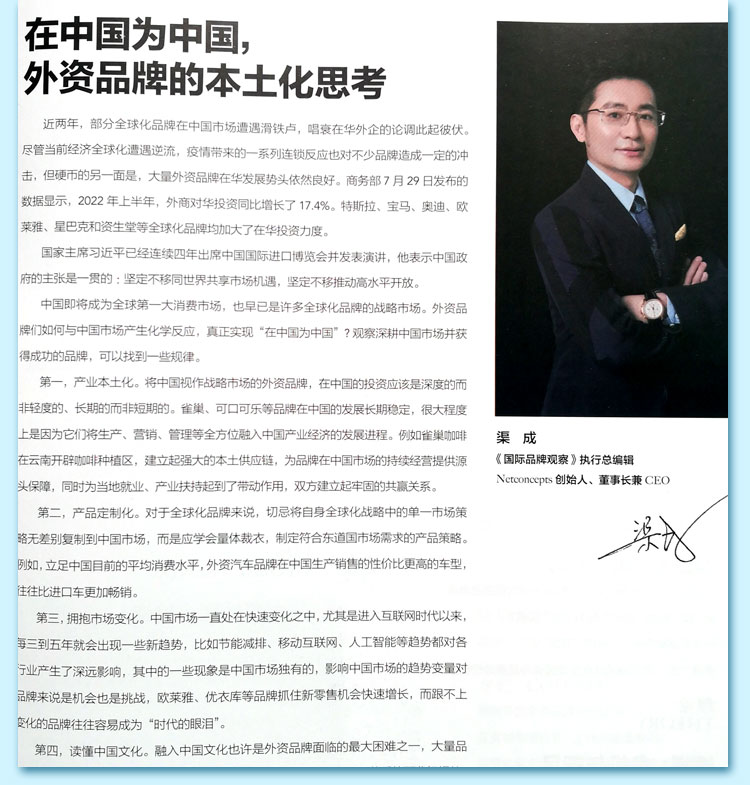 《國際品牌觀察》立足國內、面向世界;注重信息與使用性,極具參考、借鑒與收藏價值。她目前是國內同類期刊中發(fā)行量最大、廣告量最大的月刊,具有相當權威性和影響力。