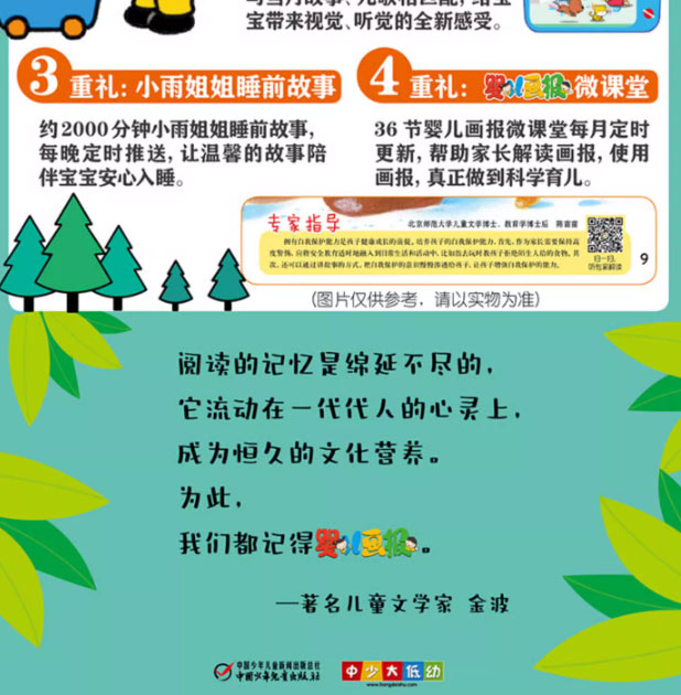 《嬰兒畫報》為0-3歲的嬰兒提供最佳閱讀內容,打造嬰兒雜志第一品牌!秼雰寒媹蟆窂娬{知識性和教育性,以教育部《幼兒園教育大綱》為指導,以培養聰明健康的寶寶為目的,以快樂教育和游戲教育為手段,著力于寶寶的好品質培養、好習慣培養、認知能力培養、行為能力培養、想像力培養;將教育元素通俗化,讓家長更容易接受。《嬰兒畫報》畫面大、文字大、形象可愛、色彩鮮明,是嬰兒閱讀啟蒙的首選。