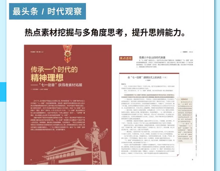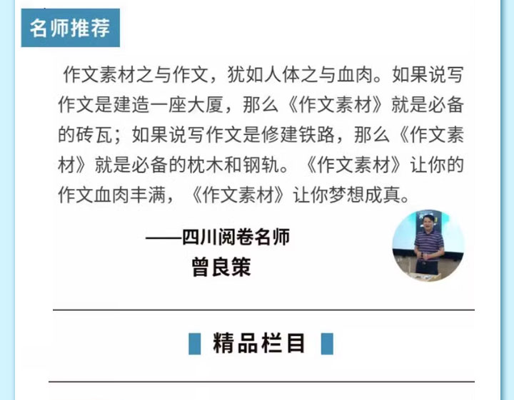 作文素材下半月:【素材榜樣】【素材天下】【銳眼素材】【素材前線】【素材六藝館】【素材練兵場(chǎng)】【名師講堂】