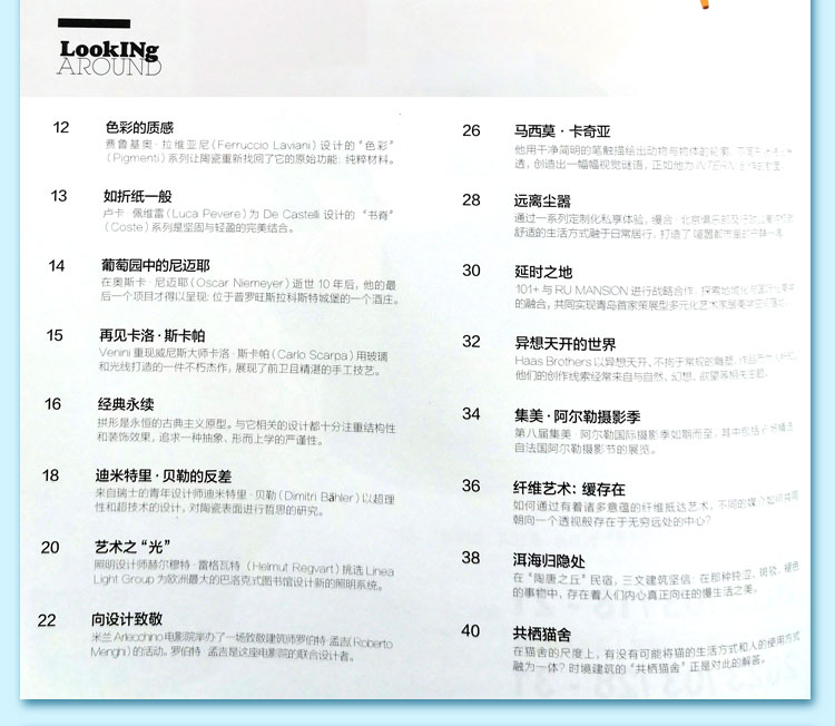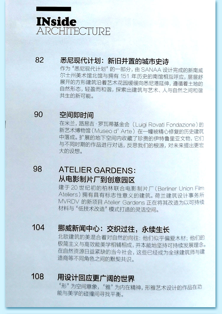 1) 雜志內容主打全球視野的最新設計趨勢和理念,以及全球范圍的設計大師、大項目深度報道,值得中國讀者閱讀、收藏或借鑒。