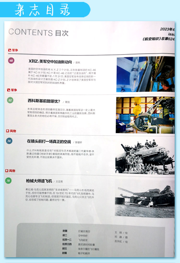 《航空知識》中國唯一一本專門介紹航空知識的軍事科普月刊,《航空知識》因其獨特性、新穎性、趣味性及詳細(xì)的知識內(nèi)容而深受廣大軍事發(fā)燒友的喜愛,該刊近年來刊登的大量精美圖片更是大受讀者的歡迎,講述現(xiàn)代航空知識,傳播航空領(lǐng)域文化,世界航空歷史和中國航空發(fā)展的見證。