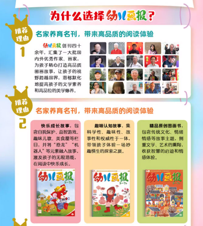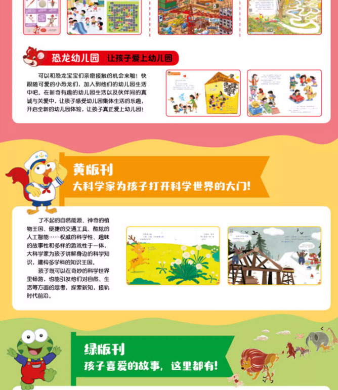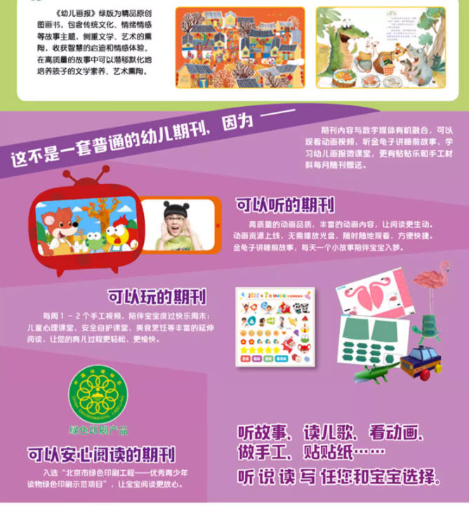 《幼兒畫(huà)報(bào)》以教育部頒布的《幼兒園教育指導(dǎo)綱要》為指導(dǎo),樹(shù)立高度的責(zé)任感,創(chuàng)設(shè)適合中國(guó)幼兒身心發(fā)展的欄目及內(nèi)容,如:“紅袋鼠的自我保護(hù)故事” “好習(xí)慣故事” “寶寶唱成語(yǔ)故事” “奧運(yùn)城堡漫游記”等欄目。每篇故事均由著名幼兒教育專家指導(dǎo), 保證了《幼兒畫(huà)報(bào)》的專業(yè)性和權(quán)威性。