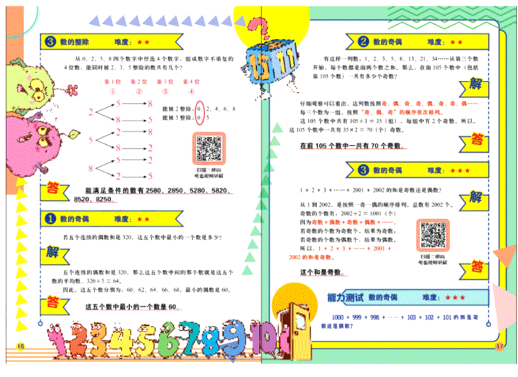 雜志中許多習題都配有二維碼,手機掃描就可以觀看視頻講解,讓數學學習火起來,幫助孩子對所講內容的吸收與消化