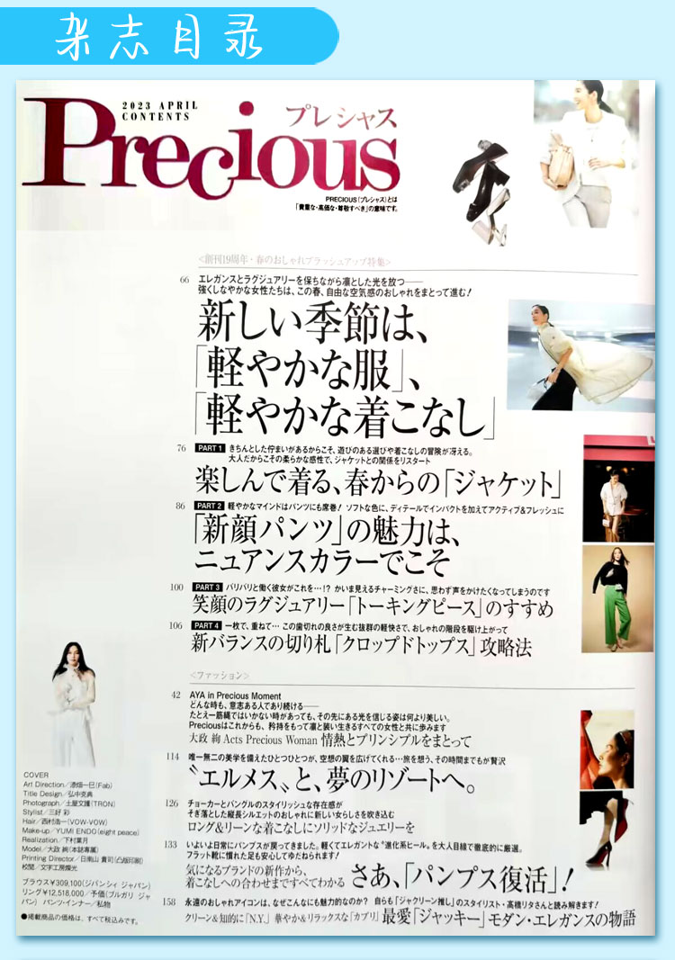 雜志概要:《Precious(プレシャス)日本女性時(shí)尚雜志》適合30~40歲女性的時(shí)尚雜志。