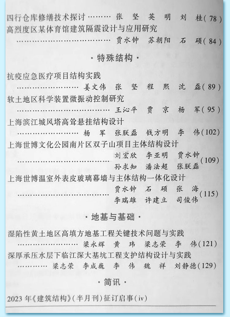 主要欄目:包括工業與民用建筑中的混凝土結構、鋼結構、預應力結構、索膜結構、砌體結構、地基與基礎、工程抗震、工程檢測、房屋加固與改造、建筑新技術新材料開發等方面的研究應用成果、設計施工經驗以及工程事故分析處理、結構軟件的應用、規范和規程的修編及背景介紹、技術講座、國內外科技綜述、重點工程報道、科技簡訊、設計論壇、問題和討論、工程實錄。報道特色:內容以實用性、科學性、導向性和資料信息性為特色。發行量始終居行業同類期刊之首。