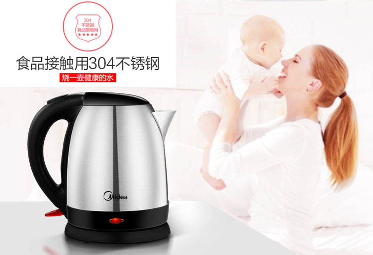 “豪”禮H:美的(Midea)電水壺12S03E1M 304不銹鋼電熱水壺 1.2L容量 快速加熱 防干燒燒水壺