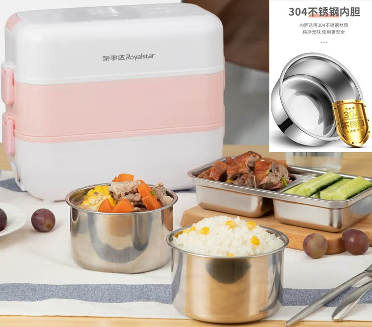 “豪”禮F:榮事達電熱飯盒上班族304不銹鋼蒸煮插電保溫電熱飯器雙層粉色加餐具