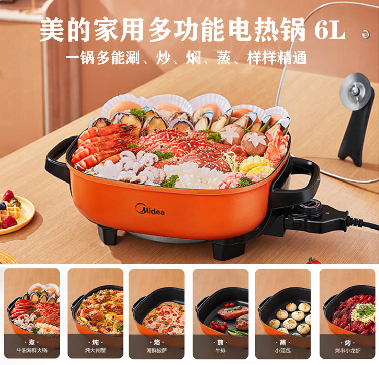 “豪”禮E:美的(Midea) 家用多功能電火鍋6L,一鍋多能涮、炒、燜、蒸樣樣精通!