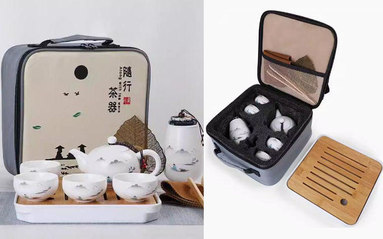“豪”禮I:新款旅行茶具套裝 一陶瓷茶壺+四茶杯+茶葉罐+方形干泡盤