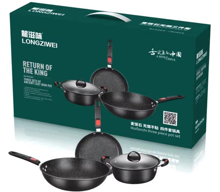 “豪”禮J:新款麥飯石三件套鍋不粘鍋家用套裝鑄鐵煎炒湯鍋