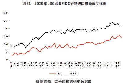 合發(fā)布的《全球糧食危機報告》顯示,59個國家和地區(qū)近2.82億人遭遇重度饑餓。自 1961年以來最不發(fā)達國家(LDC)和糧食凈進口發(fā)展中國家(NFIDC)谷物進口依賴率 不斷上升,近年來更加面臨進口減少、穩(wěn)定性減弱等問題,糧食不安全威脅加劇。世 界貿(mào)易組織(WTO)一直關(guān)注LDC和NFIDC糧食安全問題,在其框架下形成了一系列